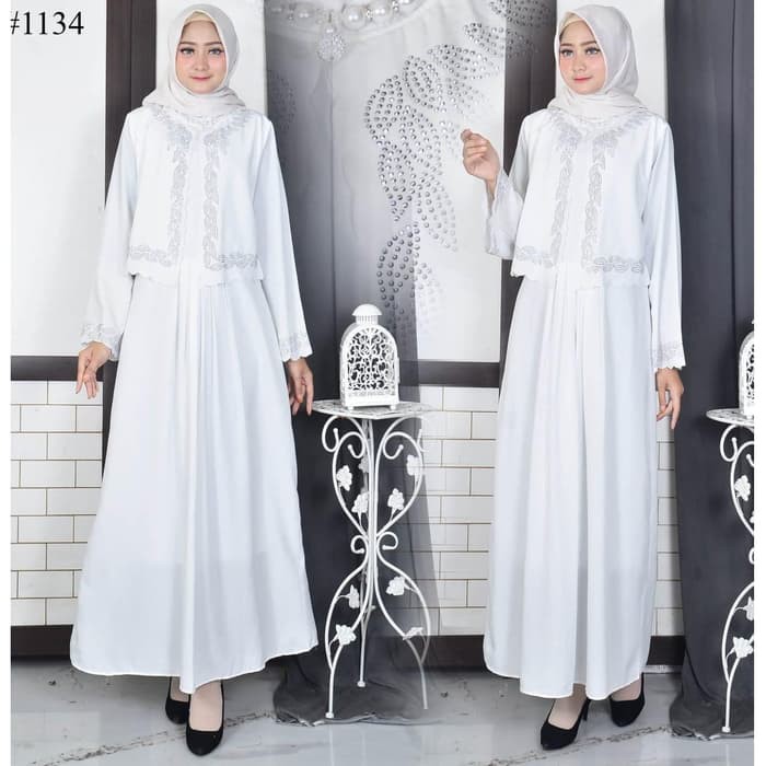 Baju Gamis Putih Busana Muslim Lebaran Haji Baju Muslim Wanita 1134 L Shopee Indonesia