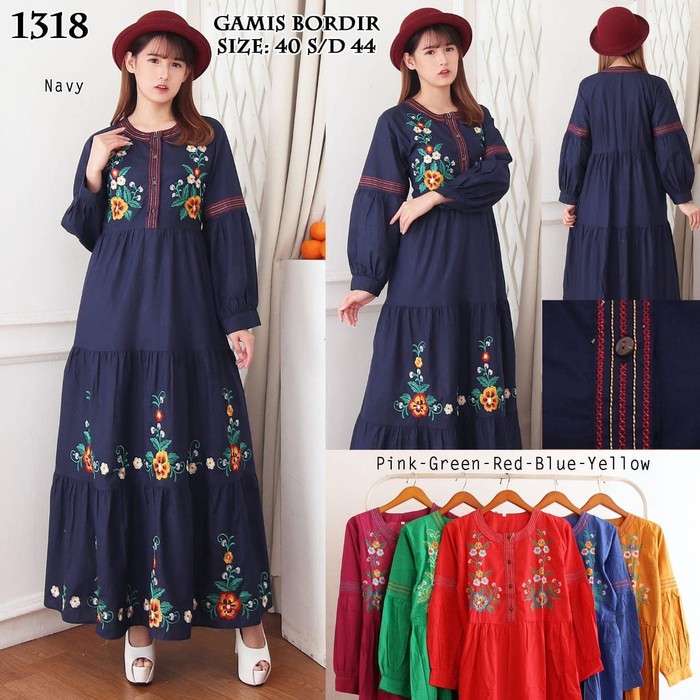 Murah Gamis Polos Bordir Bunga Muslimah Baju Busana Muslim Terbaru Wanita Shopee Indonesia