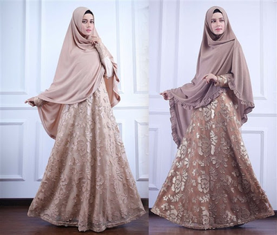 59 Model Baju Gamis Brokat Batik Untuk Pesta Modern Syar I 2019