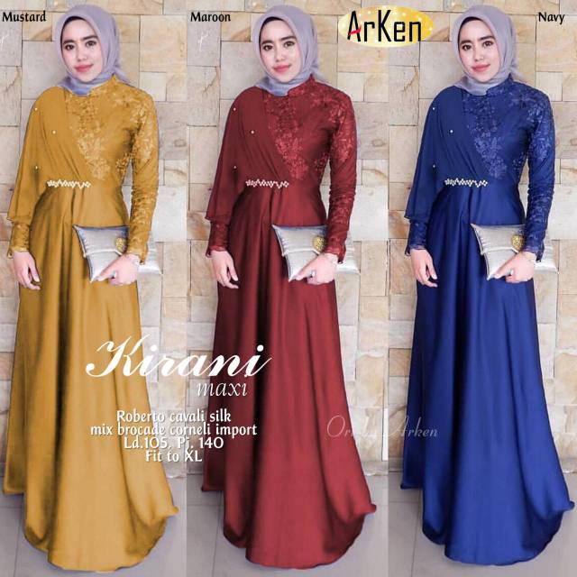 Kirani Maxy Arken Gamis Mega Bahan Roberto Cavali Silk Gamis Party
