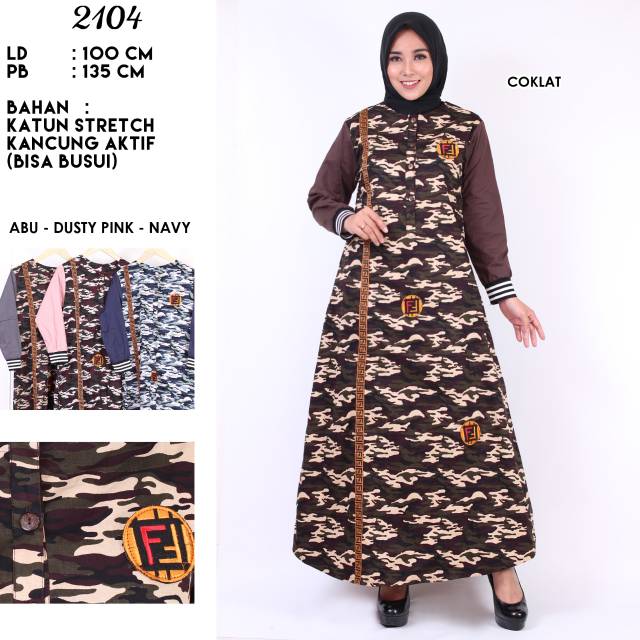 Gamis Katun Stretch Kombinasi Army