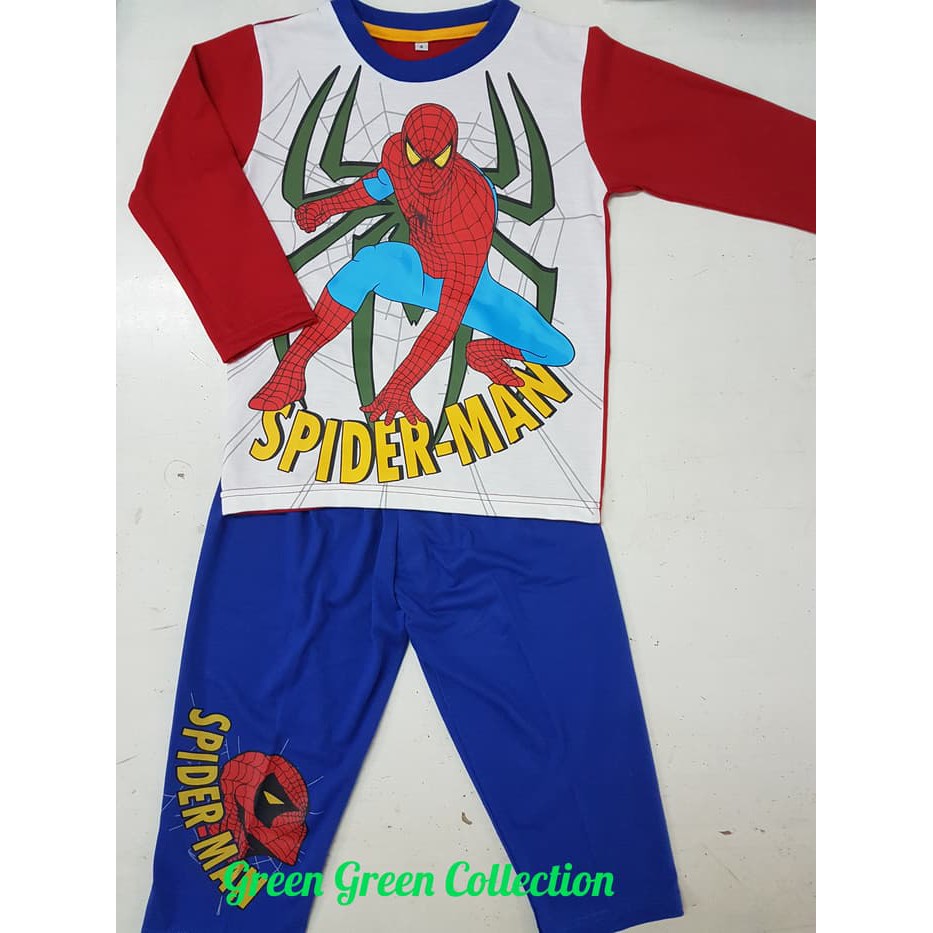 Baju Tidur Anak Setelan Piama Piyama Kaos Spiderman Rb Long 8 10 12