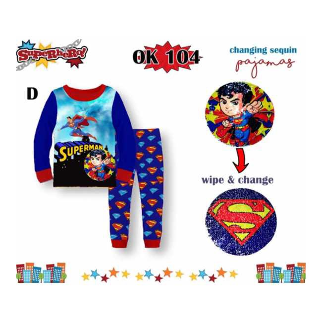 Piyama Superman Warna Biru Langit Baju Tidur Anak Laki Laki Branded Lengan Panjang Impor Setelan