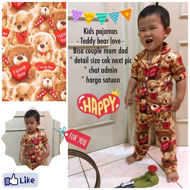 Piyama Anak Teddy Bear Love Red Kids Baju Tidur Pasangan Ibu Anak Couple Setelan Kembaran Katun