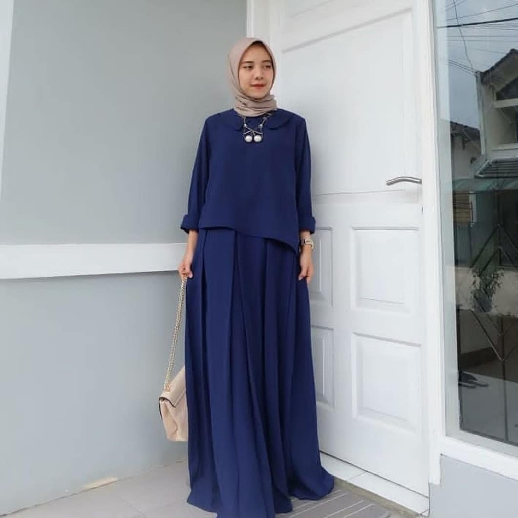 Terlihat Elegan Dan Manis Baju Muslim Warna Navy Blue Ini Cocok