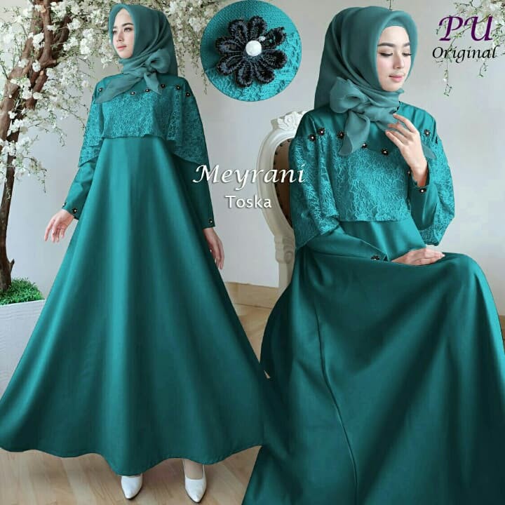 Model Gamis Syari Muslimah Modern Meliza Hijau Tosca Jual Gamis