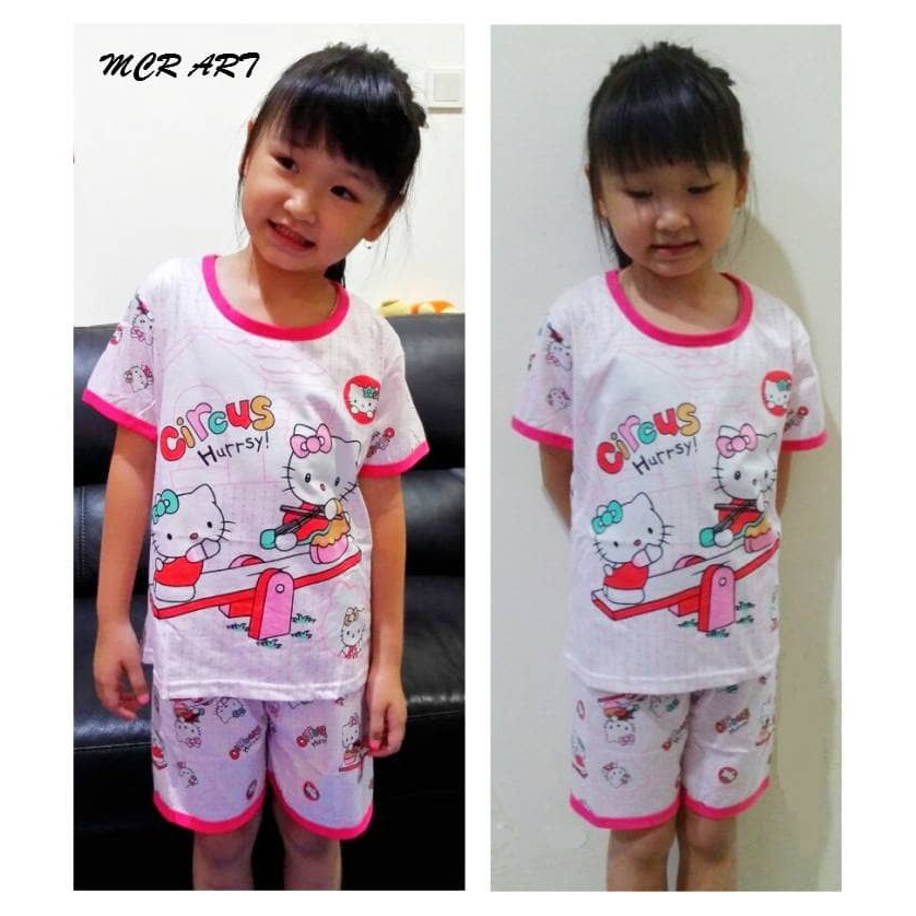 Baju Tidur Anak Perempuan Cewek Lucu Setelan Pendek Kaos Hk Kid Girl