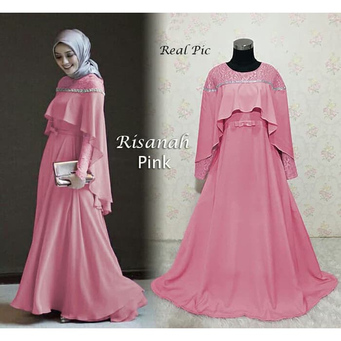 H84 Baju Gamis Pesta Muslim Remaja Wisuda Modern Rihana Brokat Brukat Warna Pink