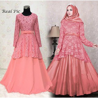 Gamis Pesta Satin Kombinasi Brokat Untuk Wanita Muslim Terbaru Modern