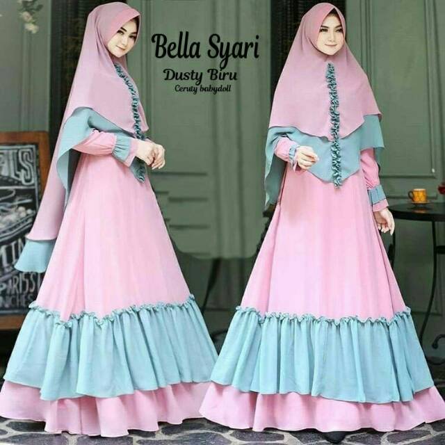 Bella Syari Ceruty Babydoll Setelan Gamis Dress Busana Baju Muslim Modern Fit Xl Biru Dusty Hitam