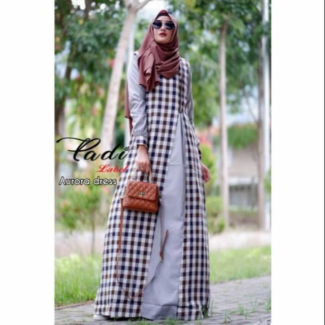 Gamis Katun Premium Motif Kotak Kotak By Ladi Labels Aurora Dress Busana Muslim Terbaru