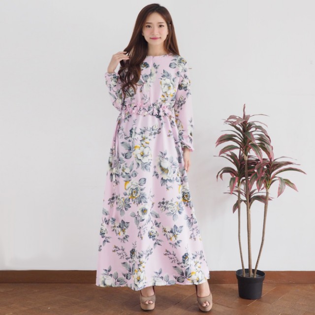 Gamis Serut Bunga Busana Muslim Wanita Baju Pengajian Kaftan Grosir
