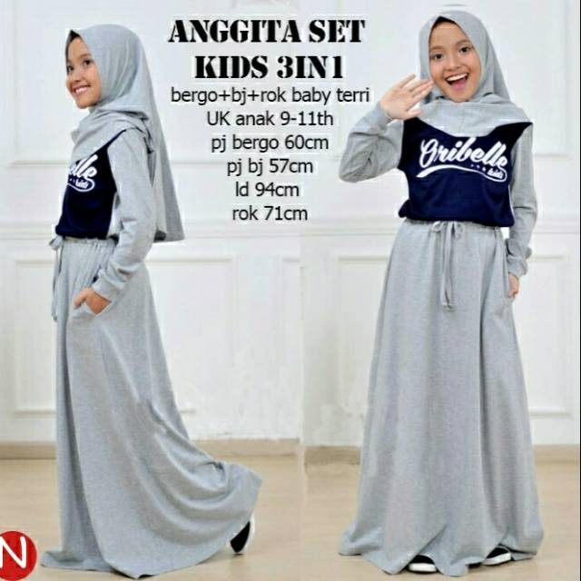 Anggita Set Kids 3in1 Baju Muslim Anak Gamis Anak Baju Syari Anak Baju Ngaji Anak Setelan Anak Cewe
