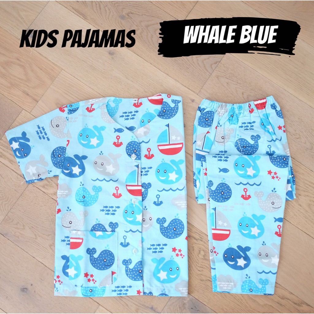 Setelan Baju Tidur Anak Cowok Cewek Whale Blue Piyama Anak Murah Lucu Adem Bahan Katun Best Seller
