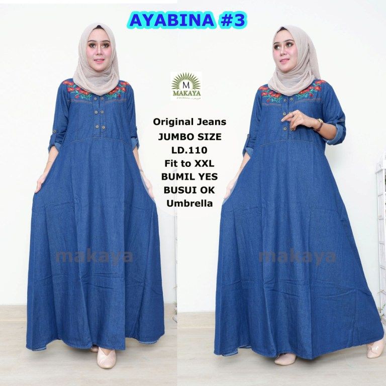 Ayabina Jeans Dress Ori Makaya Gamis Wanita Muslimah Jumbo Longdress Busui Bumil Bordir Jeanswash