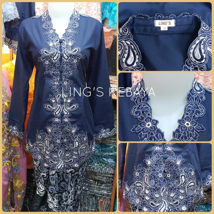 Baju Kebaya Modern Terbaru Encim Spesial Silver Navy Cotton Shopee Indonesia